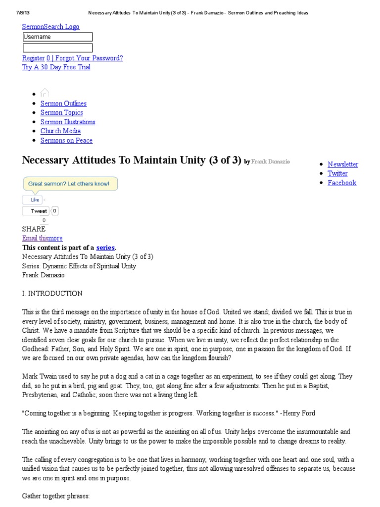 Necessary Attitudes To Maintain Unity 3 Of 3 Frank Damazio Sermon Outlines And Preaching Ideas Pdf Sermon Christian Church